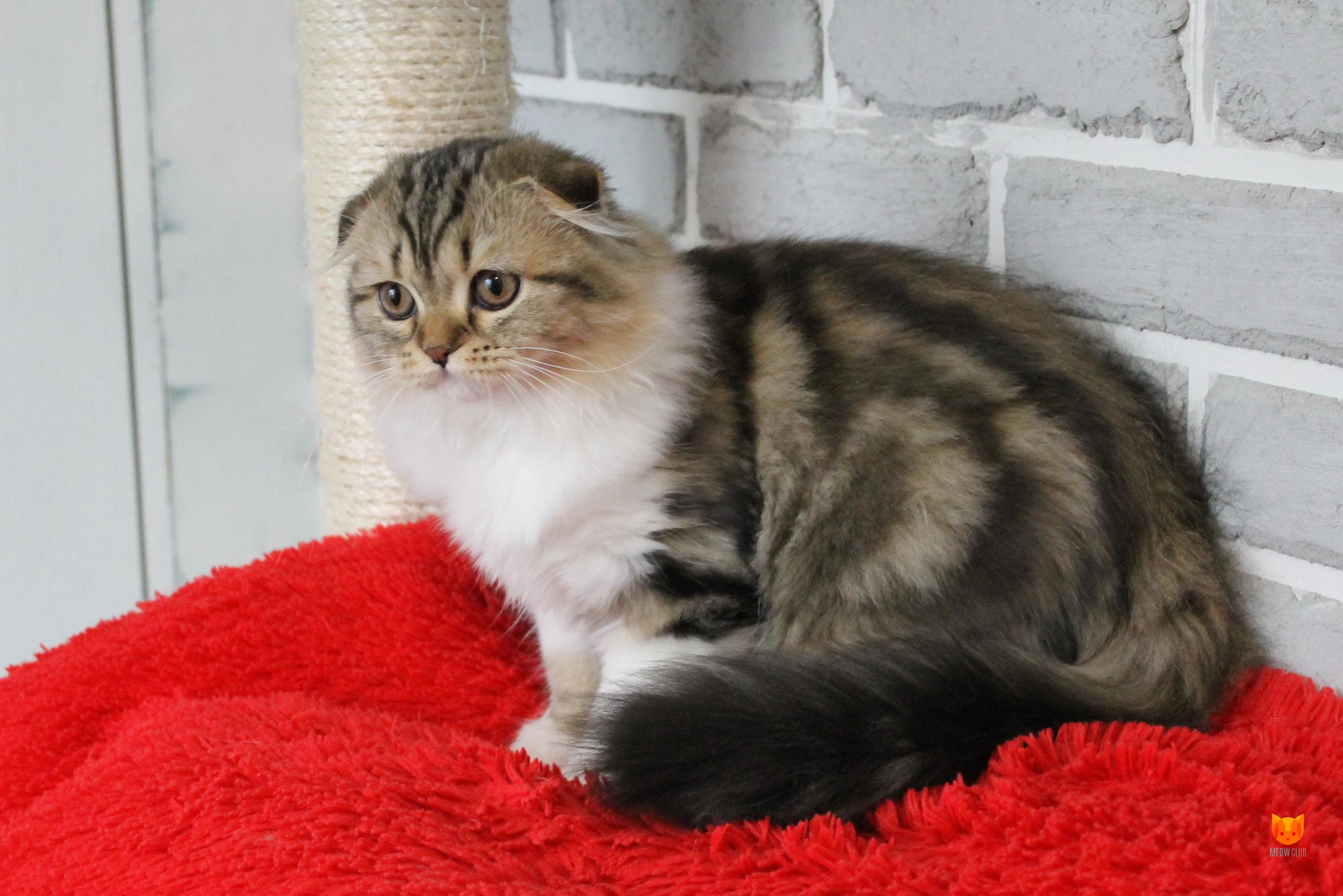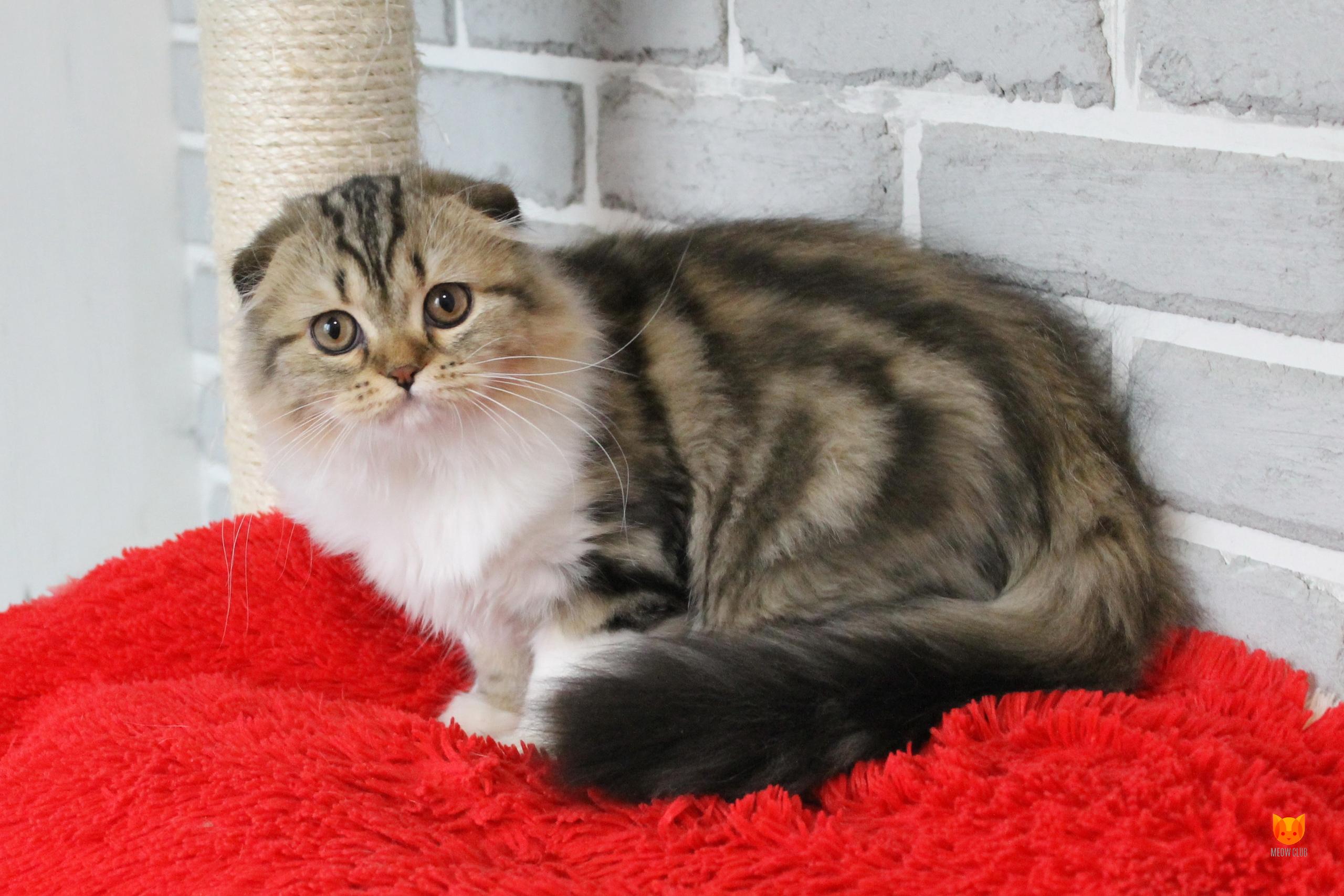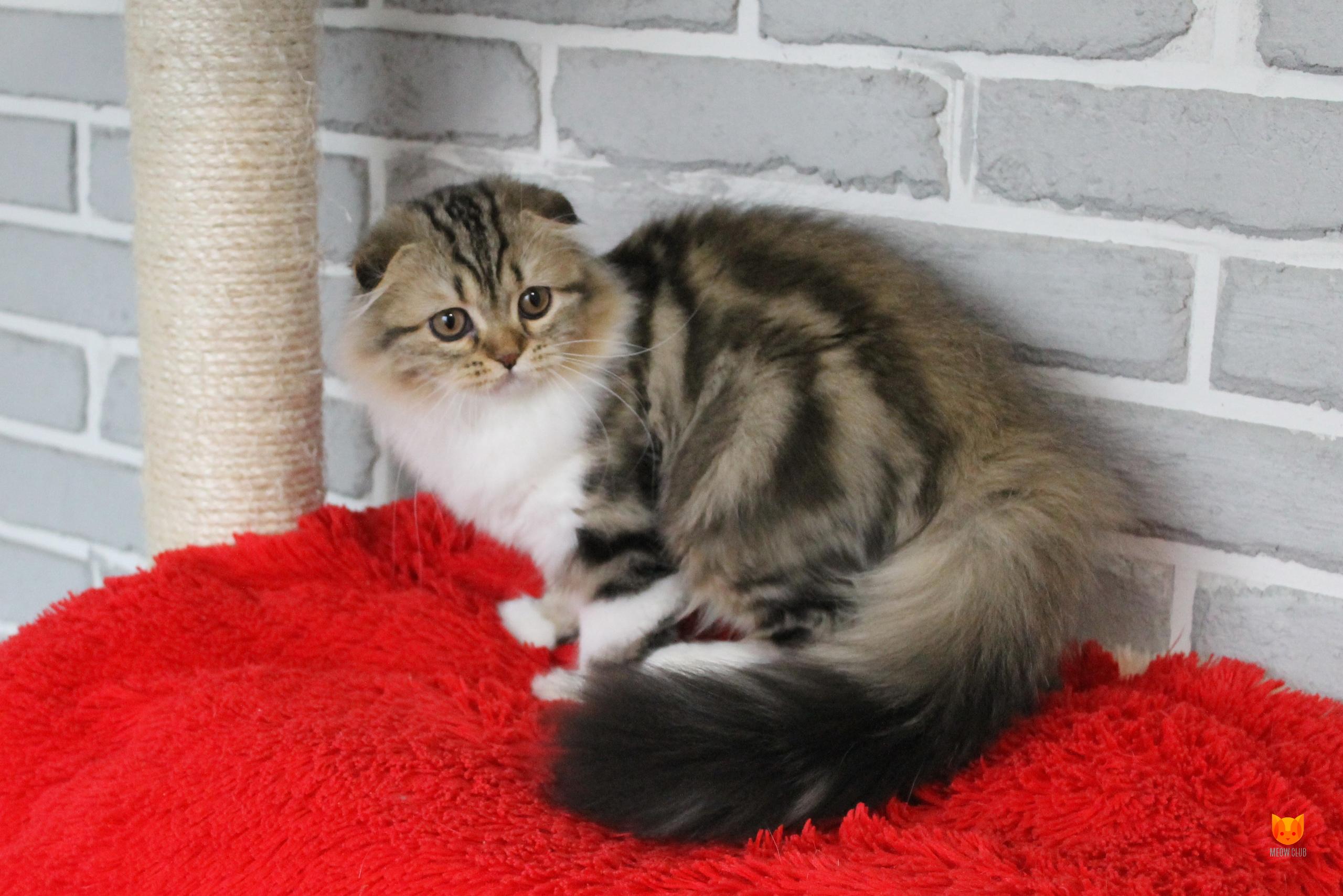 Замечательная девочка с хорошими породными данными, отличной шубкой с четко прокрашенным мрамором. Обладательница шикарного хвоста. Очень ласковая с людьми. В любимцы переедет стерилизованной.